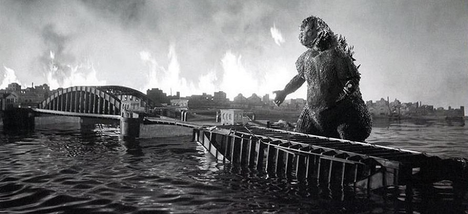 Along with increasing Godzilla’s size, the U.S. market tampering did away with the atomic destruction theme permeating the Japanese original. Modern reviewers turn somersaults attempting to attribute and/or explain the meanings of it all, getting downright embarrassing in their adulation.