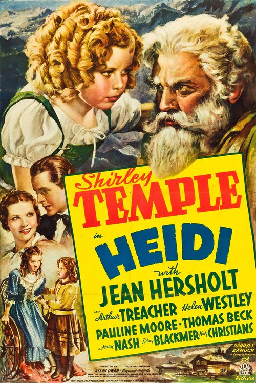 HEIDI wasn’t a huge hit for Shirley Temple in 1937—44th place, with her other drama that year, Wee Willie Winkie, placing 13th. But a $4,000,000 gross was still a good run for the pint-sized heroine, battling the Depression one smile, skip and song at a time. Years of TV showings later locked it in as essential kiddie time, a sentimental memory maker prefigured since Johanna Spyri’s classic 1880 book racked at least 50,000,000 copies.