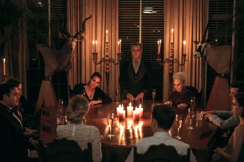 Smart, sweet & sexy ‘Grace’ (Weaving, 27) marries ‘Alex le Domas’ (Mark O’Brien) at the estate of his wealthy family, whose fortune was built on designing board games. Alex lets her know his tribe is off-kilter, but how far off they are is revealed in a post-ceremony tradition where the gathered clan plays a game together. This time, it’s “hide-and-seek”. Before you can say “Annulment, you depraved bastard”, Grace finds out the game has her hiding for her life in various parts of the mansion as the brood, armed with a variety of antique weapons, track her down for a ritual sacrifice.
