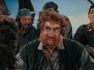 Power at 28 had already dealt with sandstorms (Suez), firestorms (In Old Chicago), a earthquake, flood and plague (The Rains Came), bullfights (Blood And Sand), bank robbing (Jesse James) and the Luftwaffe (A Yank In The R.A.F.), so wielding a cutlass and flinging a wench over his shoulder was simply logical. O’Hara hit a simpatico groove with him, and she tackles the de rigueur manhandling with dignity, spirit and style: she’d do justice to a half-dozen swashbucklers later on. Sanders, once again Power’s nemesis that same year after his brute in Son Of Fury, pulls out the flamboyant stops, complete with a wild red beard and eyebrows you could swab a cannon with. As Ty’s sidekick, Thomas Mitchell is on hand, doing his faithful Irish Boozehound business, but the acting honors go to big Laird Cregar, ebullient and commanding as the legendary Morgan, another memorable piece in his too-brief gallery of rogues. *