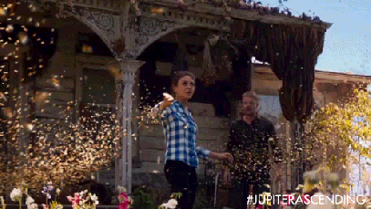 …..into 127 minutes of wildly imaginative, confusing, action-crammed, inventive, derivative, exciting, cosmos opera escapism, written & directed by earth-raised space cadet siblings,The Wachowskis. Though their preceding fantasy epic, Cloud Atlas, had polarized critics and lost money, they had enough banked clout (and coin) from dispensing the pills of The Matrix trilogy to see this bonkers extravaganza launched.