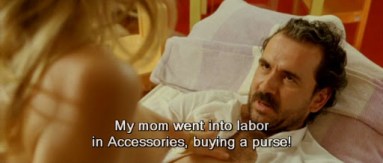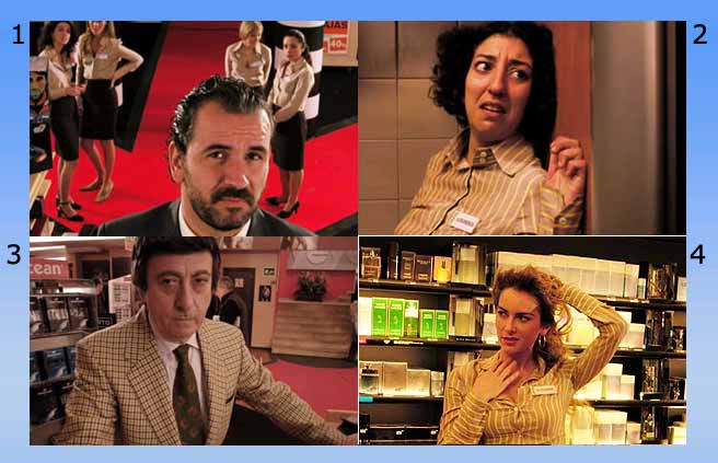 ‘Yeyo’s department store: brash beyond Bond, slick sales ace ‘Rafael’ (Guillermo Toledo) commands the women’s wear section like his private fiefdom/harem, serial bedding sexy salesladies like ‘Roxanne’ (Kira Miró, basically OMG!), and indulging his ego. But his playground becomes a mine field when an argument with snide men’s wear rival ‘Don Antonio’ (Luis Varela) escalates into a desperate dead-end. ‘Help’ turns up in the form of the plain and—to Rafael—quite resistible ‘Lourdes’ (Mónica Cervera), but deliverance has a price tag too rich for him to bear.