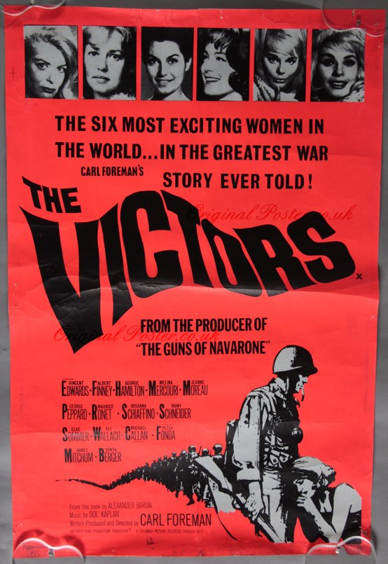 THE VICTORS, sprawling, episodic anti-war epic was defeated in the box-office battlefield of 1963, a casualty not of quality but from timing and tone. Written, directed & produced by Carl Foreman, who took its framework from the 1953 book “The Human Kind”, written by Alexander Baron, 25 short pieces based on his experiences as a British soldier. Foreman changed the troops to Americans, and took the anti-war jabs he’d sneaked into the scripts of the thrilling WW2 adventure blockbusters The Bridge On The River Kwai and The Guns Of Navarone, and let go with a full-scale barrage in his first and only directorial effort.