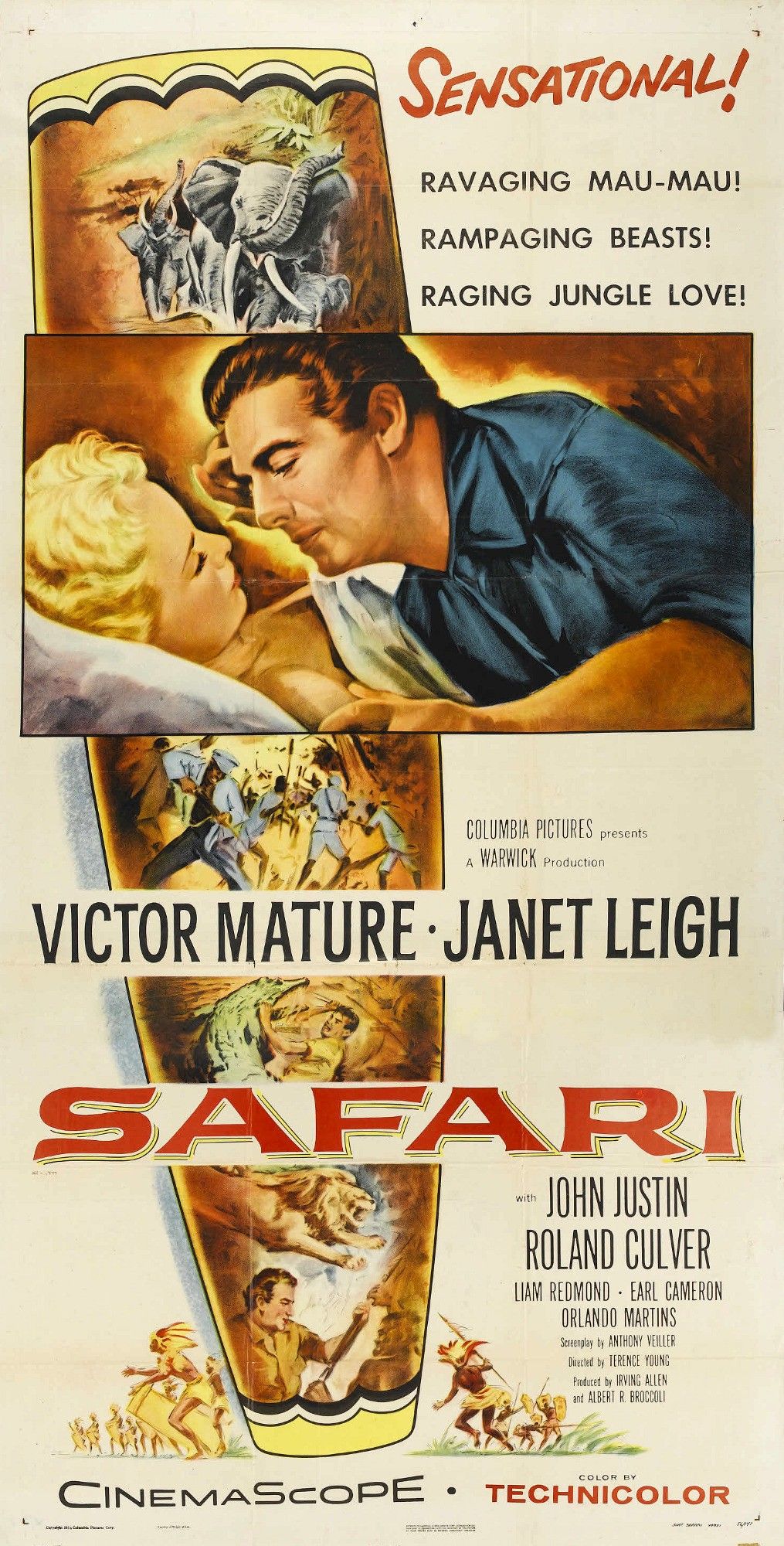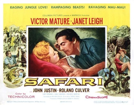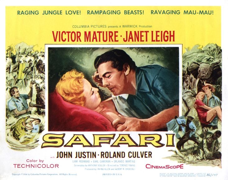 SAFARI guides Victor Mature and Janet Leigh across Kenyan landscapes and into the midst of the Mau Mau rebellion that transfixed the then-British colony for eight bloody years during the 50s. This visually handsome, dramatically daft 1956 adventure was one of a trio of movies made about the insurgency, preceded the year before by Simba, with Dirk Bogarde, followed a year after by Something Of Value, with Rock Hudson and Sidney Poitier. Both of those serious dramas are better than this silly matinee fodder, of interest only for the location shooting and generous views of natural wonder Janet Leigh. *