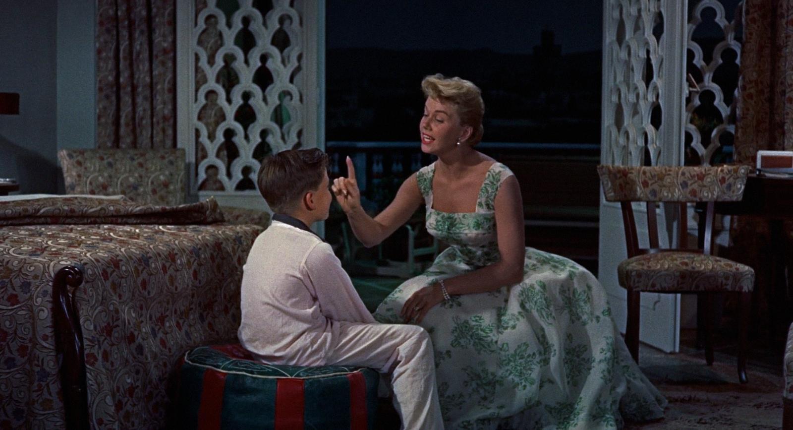 Stewart and Day make a sure-fire team, though 9-year-old Olsen is a bit too “movie kid” squeaky: he was better that same year, facing parent problems in the fine, overlooked Bigger Than Life. Day sings “Que Sera, Sera”; Jay Livingston & Ray Evans won an Oscar for the two-minute ballad. Livingston recalled “She didn’t want to record it but the studio pressured her. She did it in one take and said, ‘That’s the last you’re going to hear of this song.'” It became the year’s #2 hit record, and Day’s signature tune, forever associated with the actress. *