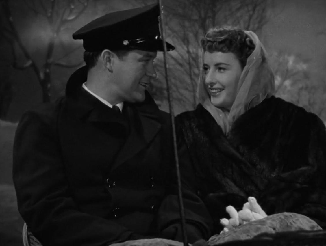 CHRISTMAS IN CONNECTICUT gave Barbara Stanwyck some welcome and timely comic relief after the hot murderess she best served cold in Double Indemnity. There’s fraud and deceit in this misadventure, too, but instead of a slinking vixen parboiling randy ganders for money and spite, here her smiles are sweet and the guile genuine, playing Santa’s elf to a swell sailor, saved from the war.