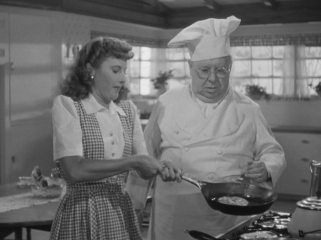 Stanwyck is good (always nice to see her in a comedy), Morgan genial, and along with Greenstreet support comes from Reginald Gardiner, as the guy pressed in as husband (he really wants to marry her, see), and S.Z. Sakall, doing his “cuddles” bit once again (too much if you’re not extra fond of it) as Stanwyck’s cuisine beard.
