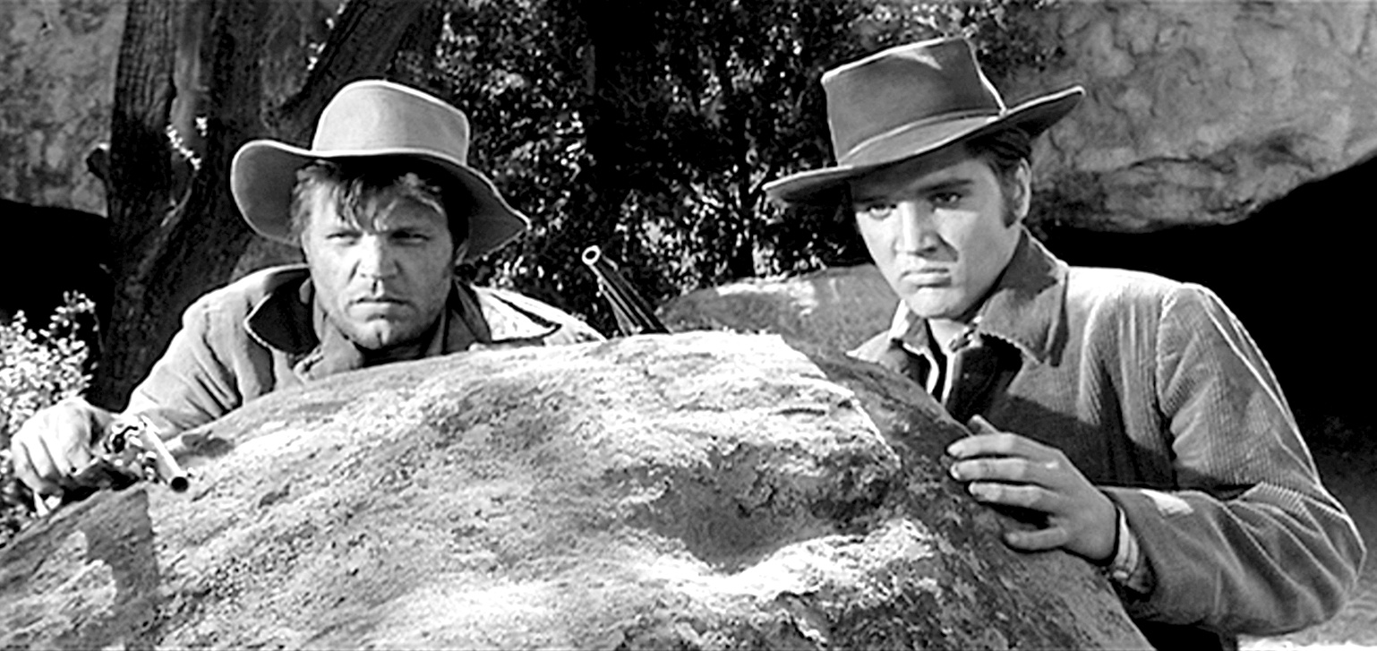 Presley was 3rd-billed after Egan and Paget, with supporting Reno’s ably covered by William Campbell (one of his rare times as a decent fella) and James Drury (looking natural on horseback, six years before becoming The Virginian).
