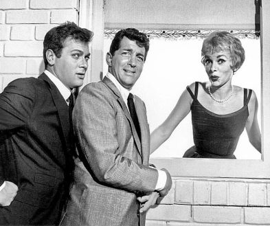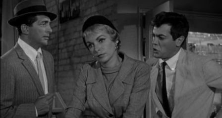 * Say “Sixties sex comedies” (I dare ya) and most people automatically lock onto Rock Hudson & Doris Day. Though they only paired up in three (and Pillow Talk was a ’59 model), Rock finessed seven in total. When it came to batting average (make that ‘swinging’) Hudson was outflanked by Curtis with 13, with ever-flustered Doris matching Tony, freckle for leer. But Dino led the bedroom races with 17 (including his four ‘Matt Helm’ spy frolics, and not counting four cameos). Sure, ex-partner Jerry Lewis windmilled at him with a matching 17 (and a ‘Mad‘ cameo), but ‘Jerry Lewis Sex Comedies’ is a self-disqualifying category. Add Dean’s 16 previous gagfests with Jer and you’ll need a drink. Or a therapist. Or a therapist who drinks and looks like Janet Leigh.