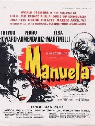 MANUELA, an offbeat and compelling adult-oriented drama from England in 1957 makes for a neat surprise for fans of its three charismatic lead actors—Trevor Howard, Elsa Martinelli and Pedro Armendariz—and their director, future Bond helmsman Guy Hamilton. Besides directing, Hamilton, along with Ivan Foxwell, helped William Woods write the script. Woods slim 159-page book came out the same year as “Manuela: A Novel of Love and Revenge”. The seaborne sex & salvation story carries whiffs of Maugham and Conrad.