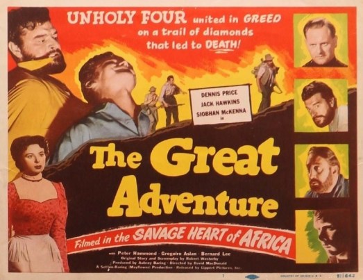 THE ADVENTURERS sorts out as a grim and limping ‘Treasure of Sierra South Africa’, with diamonds instead of gold, no bandits or “stinking badges“. Like the Mexico-set adventure & greed drama, this 1951 variation is well acted, decently photographed and shot on location. Where the Bogart classic was enthralling, this one is just mildly interesting, and lacking the touch of someone like John Huston at the helm, the slow pacing from director David MacDonald leaches away any excitement.