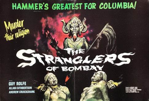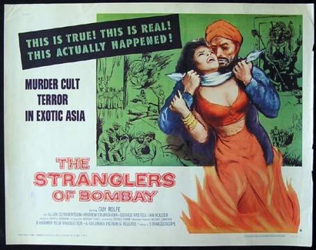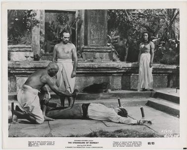 THE STRANGLERS OF BOMBAY doesn’t have anything to do with Bombay, but the catchy title helped filmgoers place it in India, where the grisly action takes place, not in the teeming city, but in the lulling countryside. All over the country, in fact, and for centuries, as the hero—an East India Company officer—discovers when he investigates ongoing ritual murders in the days when ‘The Company’ plundered ran the subcontinent. Hammer Films and their go-to director Terence Fisher take on history’s notorious Thuggee cult in a 1959 item that raised hackles with censors of the day for its sensory-offending nastiness quotient. Scabs are still picked today with p.c. fanatics whose mission is to throttle enjoyment of anything that might irk someone, somewhere, over something from some time in the past that portrayed something from some earlier period of history. Drop hankies. Seize the throttle scarf of your choice. It’s time to “KILL! KILL for the Love of KALI!”