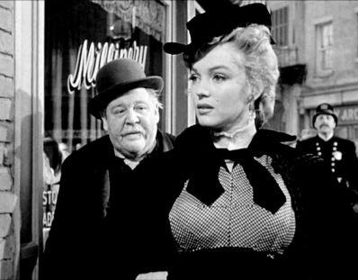 “The Cop and the Anthem”, written by Lamar Trotti, directed by Henry Koster, has Charles Laughton enjoying himself as a bum (now referred to as a “homeless drifter”, so we don’t offend bums) named ‘Soapy’ who makes numerous failed efforts to get himself arrested so as to spend the winter months in jail, warm and fed. David Wayne is his ragged, admiring confederate and Marilyn Monroe has one quick, funny scene as a streetwalker.