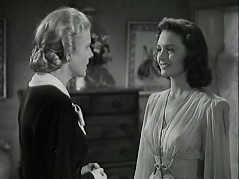 Preposterous from the get-go, but a lot of fun, with Arnold taking a welcome break from his usual role as a heavy. There are some great laugh-out-loud sight gags, impressive stunts from the dog, a neat lineup of villains led by calmly wicked Katherine Emery and Stanley Ridges, and a plum part for 20-year-old Donna Reed as the stepdaughter. Beautiful as ever, she’s mean and spiteful here, and plays it to a tee.