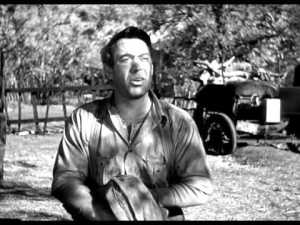 Maybe the intent was ribald ribbing of rubes, but the excessive clowning rubs raw. The crude stereotypes come off as mocking the ignored and uneducated rural “poor white trash”, which is at odds with Ford’s sensitive and sympathetic depiction of the destitute “Okies” of The Grapes Of Wrath.