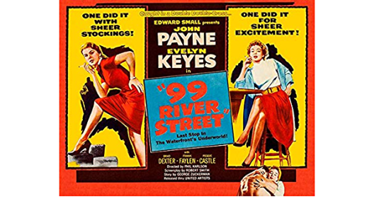 99 RIVER STREET boils lurid pulp and gritty film noir basics down to a single rotten night of betrayals, set-ups and dished-out poundings, directed by Phil Karlson with an accent on raw emotion and the rough physical expression of same. Robert Smith’s script was adapted from “Crosstown”, a short story written 8 years earlier by George Zuckerman (Border Incident, Written On The Wind). Smith, though he did stoop to Invasion, U.S.A., had good noir credits (Quicksand, Sudden Fear), and he aced this 1953 diamond, searing desperate characters into no-escape circumstances. Karlson refuses to pull punches, Franz Planer’s cinematography is marked by wary shadows and unflinching closeups, and the made-for-trouble cast is superb.