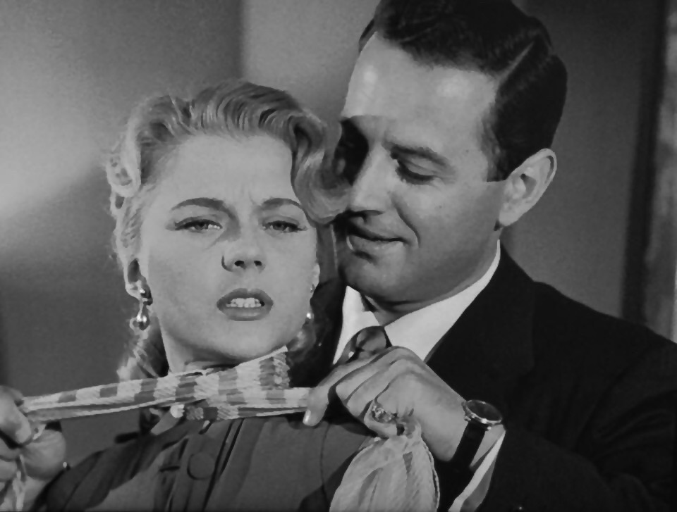 Life-battered boxer ‘Ernie Driscoll’ (John Payne) is on the ropes any way you call it. Injury ended his career hopes, he’s stuck working for peanuts as a cabbie, and his spiteful wife ‘Pauline’ (Peggie Castle) has had it, cheating on him with slick prick jewel thief ‘Vic Rawlins’ (Brad Dexter). Defeated and betrayed, Ernie’s further bedeviled when friendly ‘Linda James’ (Evelyn Keyes), an aspiring actress, uses him in a ploy to snag a part in a play. Sometimes, a guy’s had enough…and Ernie, though basically a decent lug, is also volatile, with a temper that makes his boxing prowess nothing to take lightly.