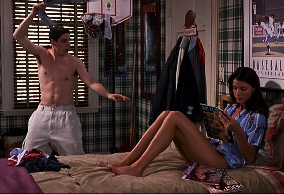 Four buddies, high-school seniors, labor under the hormonal anxiety and ego-shame of virginity, and pledge to end the testosterone torment on the night of their senior prom. Awkward and nerdy ‘Jim’ (Jason Biggs) has already humiliated himself by pre-erupting—twice—with Czech foreign exchange bombshell ‘Nadia’ (Shannon Elizabeth) while much of the school eavesdrops via webcam, but maybe flute geek ‘Michelle’ (Alison Hannigan) will lend a hand (or something), if she will shut up about “this one time, at band camp“. Handsome lacrosse jock ‘Oz’ (Chris Klein) joins choir to catch pretty and sincere ‘Heather’ (Mena Suvari), and mastermind ‘Kevin’ (Thomas Ian Nicholas) uses a legendary carnal-tips book to work ecstatic magic on oh-so O-ready girlfriend ‘Vicky’ (Tara Reid). Budding sophisticate ‘Finch’ (Eddie Kaye Thomas) has some setbacks, but they’re rectified when he plays serious pool with ‘Stiffler’s mom’ (Jennifer Coolidge). ‘Stifler’ himself (Seean William Scott) offers unsolicited advice, as does Jim’s hopefully helpful father (Eugene Levy).