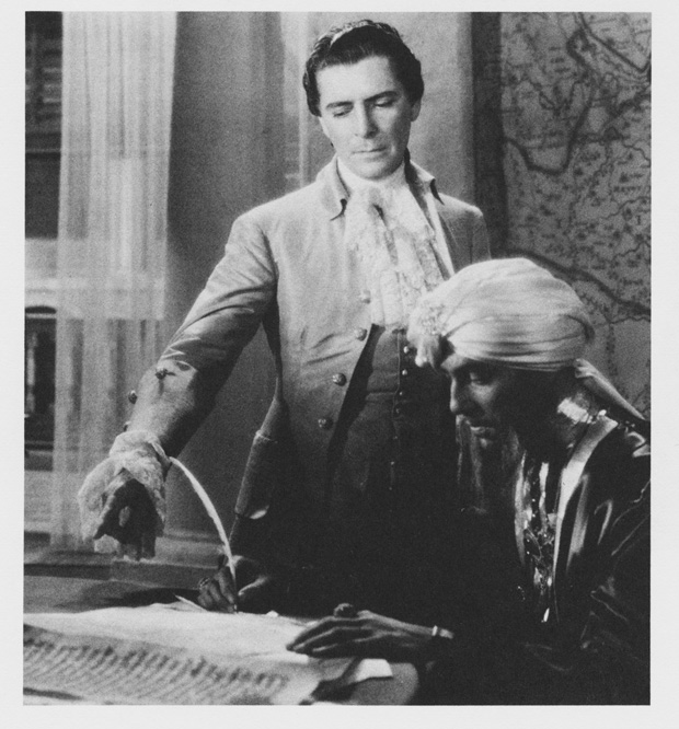 India, the mid-1700’s. Stifled working as a clerk for the East India Company, ambitious, impetuous and quirky Robert Clive (Ronald Colman) uses daring in warfare to secure the riches of the subcontinent for the Company, for the King (our pal George III) and not least for himself. He charms beauty Margaret Maskelyne (Loretta Young) into marrying him based on seeing her picture in a locket, fights battles, amasses a fortune, enters Parliament, blows the fortune, survives scandals, is redeemed by posterity. Sorta. They just left out the bad stuff.