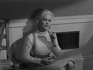 Directed—if that’s the word—by Charles F. Haas, typed into a script by Robert Smith. Haas steered Van Doren through four of her pictures, grinder musings a long remove from his studies at Harvard under poet T.S. Eliot. This laugh-riddled drive-in bait was done for $457,000, lowball enough to make canny producer Albert Zugsmith happy when it grossed $1,100,000. Zugsmith brought Mamie, Mel and Paul back for The Private Lives Of Adam and Eve, whose Biblical connections are tenuous, dubious and other things ending in ‘ous’.