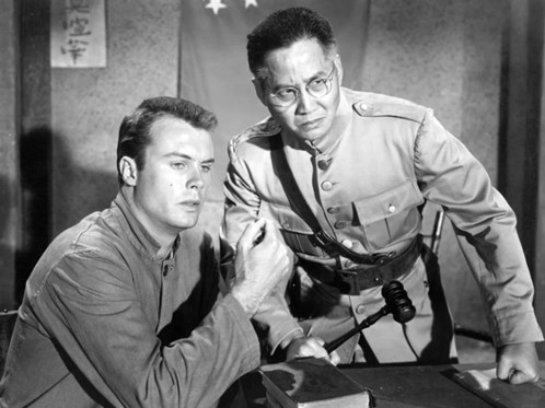At large among the abused Yanks is Leo Gordon, who played a different, much less sympathetic kind of convict that year in the tough nut Riot in Cell Block 11. Other than Malleson’s absurd purring as the Brit stooge brainwash pro, the main Red bad guys are given to Richard Loo (of course), who gets to shout a lot, and Keye Luke, tasked with patiently lecturing.