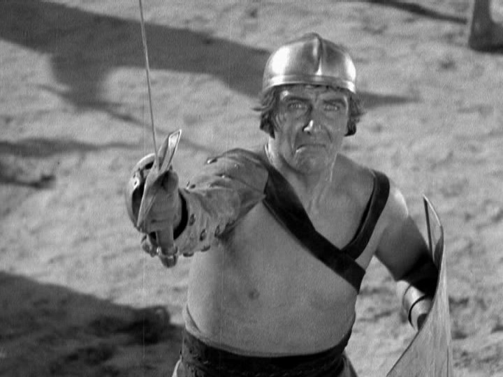 The movie opens with a Foreword announcing “Although…the characters and plot have no relation to those in the novel by Sir Edward Bulwer-Lytton, acknowledgement is made of his description of Pompeii which has inspired the physical setting of this picture“. With that bow & scrape out of the way, we find ourselves following ‘Marcus’ (Preston Foster), a blacksmith-turned-gladiator. Successful in that dicey arena, he turns to slave raiding, then eventually encounters both Jesus and Pontius Pilate, and finally finds salvation through sacrifice when the nearby volcano lays waste to the city of Pompeii.