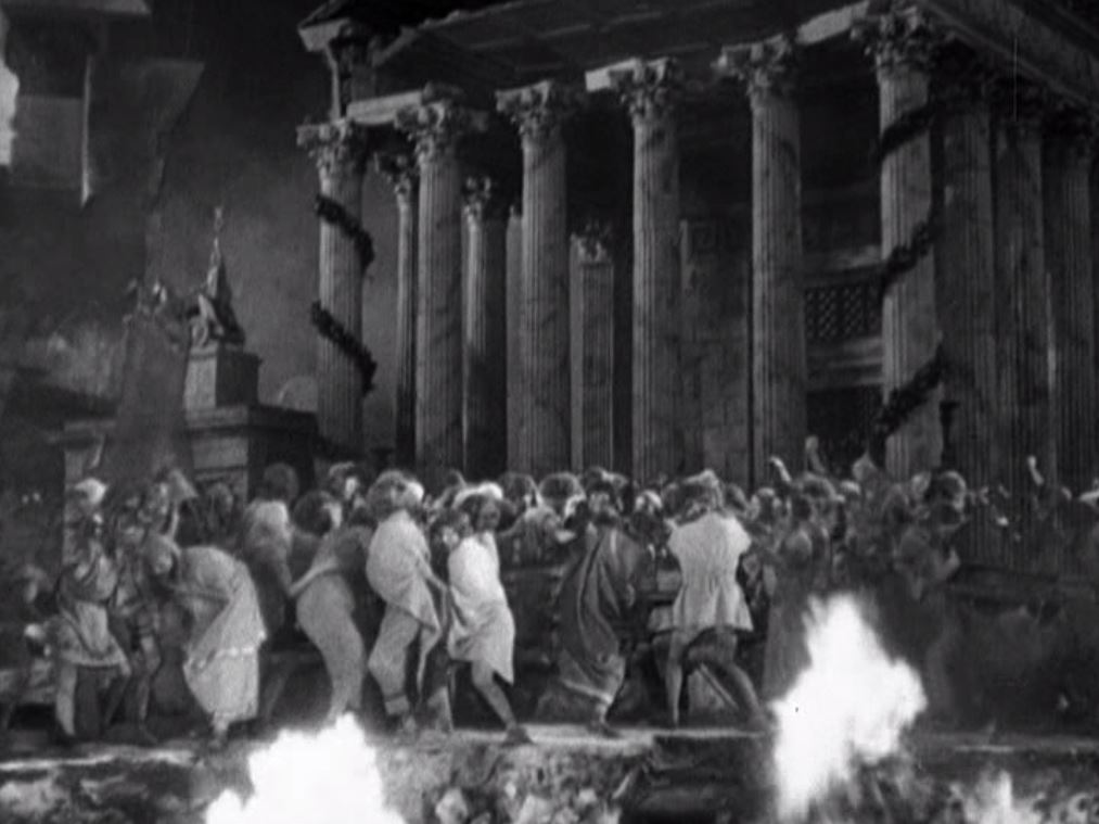 The big city-creaming showstopper at the end wowed audiences of the day: the mix of full-scale mayhem (crowds panicking under collapsing temples), miniatures and optical effects is still reasonably impressive, though it’s interesting to see (or “behold” as it were) how the special effects artists would rapidly improve their destructive capacity, with next years San Francisco and especially 1939’s The Rains Came. Nothing brings movie rascals to Jesus or crowds to cinemas like leveling a sin-ridden metropolis.