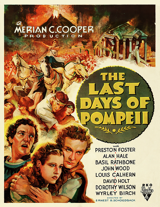 THE LAST DAYS OF POMPEII and thousands of its citizens were sealed by the volcanic explosion of Mt. Vesuvius over two days in the summer of 79 A.D. Seventeen and a half centuries later Russian painter Karl Bryullov’s canvas capture of the catastroboom inspired Edward Bulwer-Lytton’s 1834 bestseller. Numerous silent films, two sound features, operas, a musical and a TV miniseries have kept the event and title alive in the imagination, along with the ever-ticking gasbomb that is Vesuvius itself. Best known of the cinematic versions is RKO’s entertaining 1935 showpiece. Merian C. Cooper, producer of King Kong, brought back the mighty ape’s director (Ernest B. Schoedsack), screenwriter (Ruth Rose, Schoedsacks wife), and effects maestro Willis O’Brien to give Depression audiences harder times to contemplate than those they were then enduring. The Dust Bowl, gangsters and that loudmouth twerp from Germany could make way for gladiator combat, natural calamity and Christian salvation, safely enjoyed from the balcony for 25 cents a ticket. *
