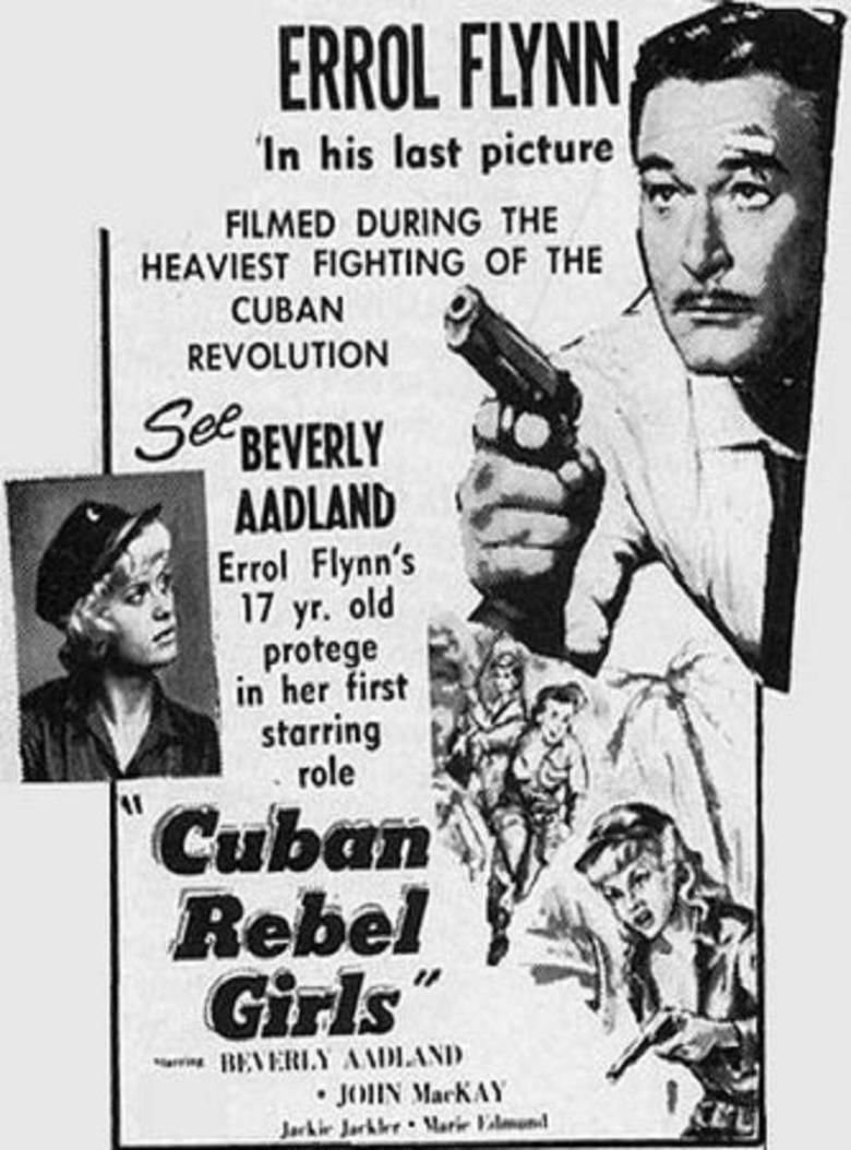 Flynn, haggard, puffy and tired, plays himself, posing as a Hearst correspondent, reporting on the 1958 Castro revolution that toppled Cuban dictator Batista. While covering some action and later the victory parade in Havana, he encounters two American girls who’ve brought guns into the country to aid the rebels and then end up fighting as guerrillas.