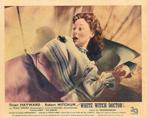 It was torn from a novel by Louise A. Stinetorf, who’d been a missionary before turning to writing. Her book was about an old missionary woman—the saintly type—and her young novice, tending tribes in Central Africa. Upon nabbing the rights, Fox honcho Darryl F. Zanuck informed producer Otto Lang: “We do not want a picture based on the ‘exploits of a woman missionary’ struggling for courage in the African jungle. We want a picture about two interesting people, a woman missionary and a white hunter, a story full of physical excitement, physical violence, and sex. We do not want a picture about a woman struggling with…locusts and other depressing things.” Veteran studio scribes Ivan Goff and Ben Roberts got the word: turn celibate religious humanitarians into Robert Mitchum and Susan Hayward.