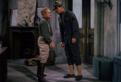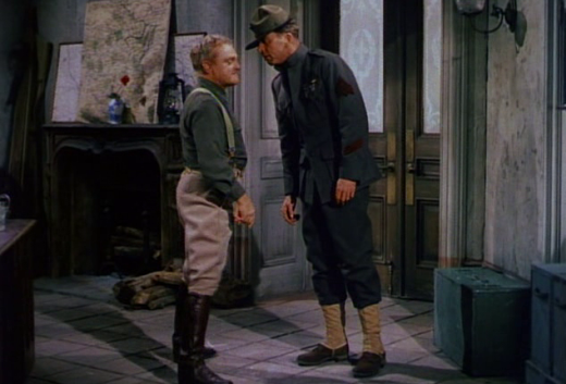 Pugnacious Captain Flagg (Cagney,52) and rule-averse fellow lifer ‘Sgt. Quirt’ (Dailey, 36) have quarrels that go way back; they’re currently squabbling over the affections of ‘Charmaine’ (Corinne Calvet, 27) who’s angling for a husband: may the best man knock the other one out first. Actual combat gives them temporary breaks, as they shepherd their company through the meat grinder of The Front.