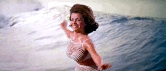 Missing this time are Harvey Lembeck’s ‘Erik von Zipper’ and his motorcycle ‘Ratz’ (and ‘Mice’). Maturity is represented by Buddy Hackett as a zillionaire, Don Rickles (as ‘Jack Fanny’, trainer of the bicep boys), and Peter Lorre, 59, in one of his last appearances; he died two days before the movie came out. One highlight is the seriously hot Luciana Paluzzi, a year before she became reasonably immortal as Bond vixen ‘Fiona Volpe’ in Thunderball. She’s a Frankie-threat for Annette to pout over, the most serious plot issue.