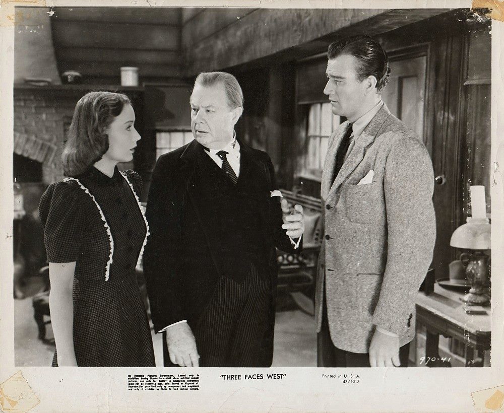 THREE FACES WEST, with John Wayne, isn’t a western, but a Depression drama from 1940, an unusual and surprising entry on the Duke’s call sheet. Mostly ignored at the time, a $1,000,000 gross leaving it 170th for the year, it had a rough row to hoe coming on the heels of mentor John Ford’s classic The Grapes Of Wrath. Forgotten today, it’s a blend of Dust Bowl desperation, European refugee sympathy and anti-Nazi positioning. With a romance added, it critiques the scarcity and quality of adequate medical care in rural America and issues a summons for the Pioneer Spirit. That stewpot sounds like a set up for a snarky put down—‘The Joads Go To Casablanca with Dr.Kildare and Daniel Boone’—but within a 79-minute framework on a $100,000 budget it works to good effect, with thoughtful writing, capable direction, fine photography and enjoyable performances. *