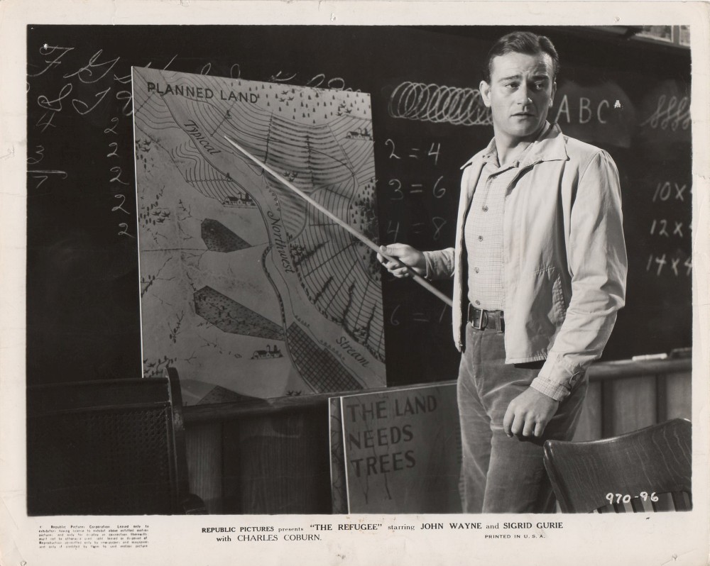 After appearing on a “We the People” radio broadcast, stating his availability and willingness to relocate and fit in, Austrian refugee ‘Dr. Karl Braun’ (Charles Coburn) answers a request from North Dakota—out there ‘West’ somewhere. When he arrives with his daughter and assistant ‘Leni’ (Sigrid Gurie), they’re met by the head of the local farmer’s association. ‘John Phillips’ (Wayne) is welcoming, but the town and region are inhospitable thanks to the ecological scourge of dust storms. When Phillips heeds the advice of the specialists at the Agriculture Department, he leads the town in an auto caravan slog to Oregon, where hope lies in land that can still grow things. The doctor and daughter go along, but there are relationship roadblocks on the way.