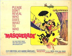 MASQUERADE began as “Castle Minerva”, a novel written by Victor Canning. A decade later it came to the screen in 1965 as one of the numerous light adventures with international settings that popped up to ride the spy wave. Though not in the Bond league, these often droll thrillers offered some of the ingredients, occasionally with an American lead actor supported by assorted English authority types, villains from unspecified countries that generally fit the exotic/restive category, and one of the decades ample crop of Euro beauties as the seductive but suspect romantic interest. Locales were a decided plus. This one, scripted by William Goldman and Michael Relph, falters some in the last third, when the tongue-in-cheek gets checkmated by overstuffing the plot, but for the most part it’s an entertaining diversion.