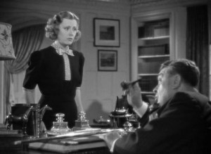 The aunts of that one-liner are of the spinster variety, small town Connecticut division, where the fluttering gossip brigade twist their snoots into a hissyfit when it’s revealed that ‘Theodora Lynn’ (Dunne) their mistakenly mousey church organist, has secretly written a racy novel, which everyone in town has secretly devoured. Though her publisher (Thurston Hall, very good) knows scandalous scribe ‘Caroline Adams’ real identity, no-one else does, until ‘Michael Grant’ (Melvyn Douglas), illustrator (and self-styled rake–he thinks) eavesdrops. He visits ‘Lynnfield’ to pester her into his clutches, but agrees to disguise his own identity to keep hers hidden from the harpies. Tables turn.