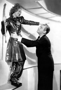 Trying to get Theodora‘s script past bluenoses allowed Code-watcher Joseph I. Breen to wag a pinkie at Columbia czar Harry Cohn, moaning that the heroine made “evil made to appear attractive” and breaks up two marriages, while “decent” and “church-going” characters are “made to appear ridiculous, stupid and silly” next to city denizens, who “indulge in extra-marital activities, drunkenness and debauchery, [and] are made to appear attractive.” He who is without sin is… pretty boring.