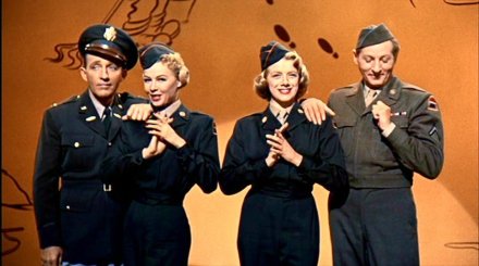 Rosemary Clooney and Vera-Ellen were at the top of their games, at 25 and 32 respectively, though Clooney plays the older sister. She gets to sing, alone and with the others, but they’re all saddled with bland numbers like “Snow” and “Sisters”. Those and the refurbished “Minstrel Number” (gratefully minus blackface this time) are gone one worse by “What Can You With A General”. That one, along with “The Old Man” and “Gee, I Wish I Was Back In The Army” lop side the boy-girl plot enough to make the movie seem like a commercial for the service, apparently needing extra p.r. from Hollywood & Berlin (the Irving one) after the Korean War.