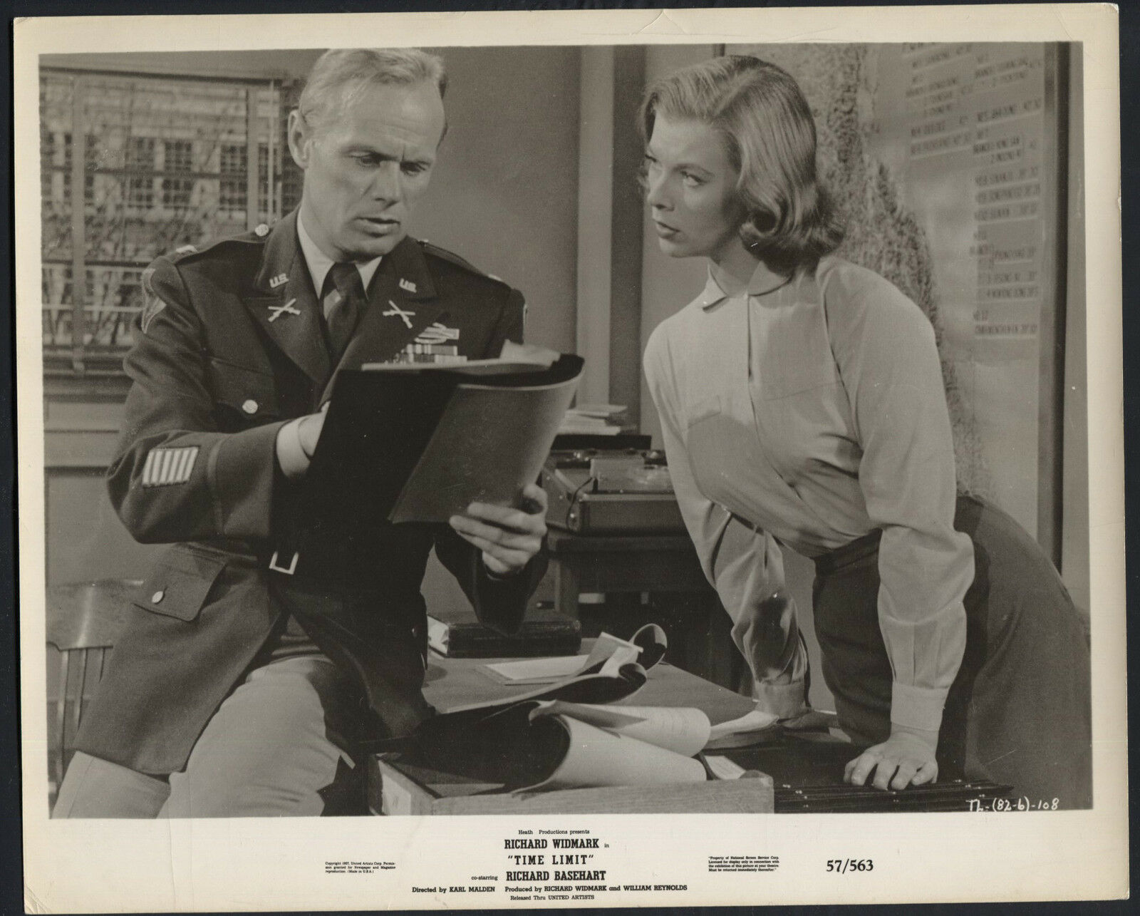 * Widmark, 42 here, dons a uniform for the 7th of 17 times he played a military officer of one kind or another (18 if you count his buckskinned Colonel Bowie in The Alamo). Time Limit was one of three Cold War-related pictures he produced, followed by 1961’s The Secret Ways (disappointing) and The Bedford Incident (excellent) in 1965.