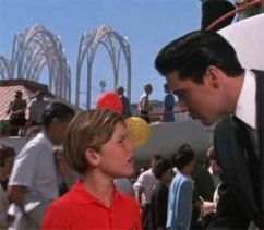 IT HAPPENED AT THE WORLD’S FAIR, Elvis Presley’s 12th movie, released in 1963, is notable for two reasons. First is the location shooting, done the year before (some with the well-protected King, the rest 2nd-unit footage) at the memorably space-agey World’s Fair in Seattle, Washington, the ‘Century 21 Exposition’. Second, unremarked at the time, but a posterity boon for film fans, was the debut, in a bit part, of 11-year-old Kurt Russell. Otherwise, it’s typical of the lame, slapdash vehicles Presley subjected himself (and loyal fans) to for the rest of his movie career. In this one he starts out as a broke crop-duster pilot and finishes with a hot blonde nurse and enrolling in NASA. On the way he gets to save an “adorable” orphan, beats the crap out of several thugs (using karate chops for good measure) and make out with Batgirl. The only thing missing was a cameo from JFK. *
