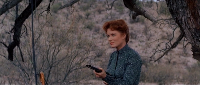 When their planned bank robbery goes askew and a stray bullet accidentally kills a young boy, the leader, called ‘Yellowlegs’ (Brian Keith) decides to accompany the boy’s saloon gal mother (Maureen O’Hara) when she takes his body to another town, to be buried next to his father. Naturally, she’s none too pleased to keep company with the man who fired the shot, let alone his scurvy companions (Steve Cochran and Chill Wills) who tag along into Apache territory.