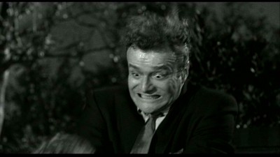 Alvy Moore is the intended comic relief. The writing for his character is excruciating: you want to sock him, and not stop. His goofiness later found TV fame, being deadpan silly on Green Acres. But he’s nails-to-blackboard in this funny farm. **