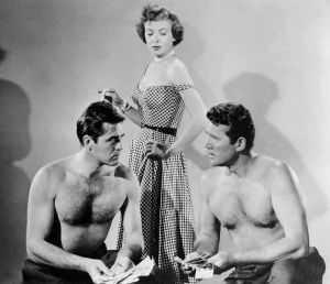Speaking of private hell—learning the ropes, Our Man Sam may have been bemused by the wrestling matches behind the scenes and above his pay grade. Lupino and producer/writer Young were divorced but still working together as they’d done on several projects for ‘The Filmakers’, their independent production company. Wed the same month she divorced Young, Lupino and Duff had been married for three years (their daughter plays Duff & Malone’s baby). During the shoot, Ida had a fling with Steve, legendary for trying to bed every actress within reach. Was Howard picking up on something extra in the scripted grapples between his wife and their co-star? In his memoir, director Siegel remarked on constant squabbles between parties, as well as a more than normal quota of boozing.
