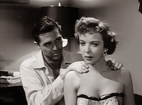 Duff is solid as the honest half of the team, unable to handle the guilt of knowing his partner’s crooked, Malone is okay signaling distress as the worried wife, but the movie belongs to Lupino’s been-there dame and Cochran’s casual conniver: they sizzle and snap with sultry attitude and brawny arrogance. *