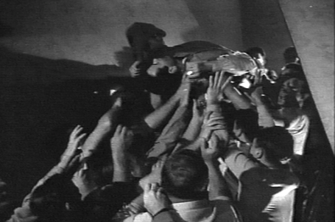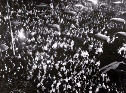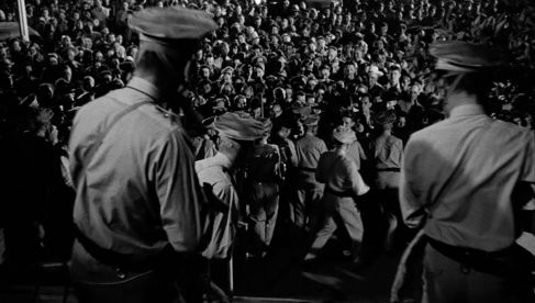 Shooting in Phoenix, for the mob sequence Endfield and 2nd-unit man Ivan Volkman didn’t rehearse instead but let the 500 extras work themselves up ad hoc. This included a slew of boozed up barflies and local college students (that was also true of the San Jose travesty), with cameraman Guy Roe and editor George Amy taking the prime cuts of the ruckus.