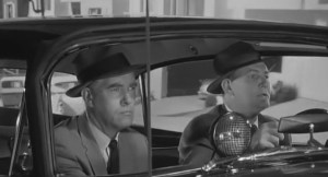Siegel: “I try to make escapes and chases as hairy as I can. A near-miss is more exciting than one that’s too far. That chase was difficult and dangerous to do. Years later, when I returned to San Francisco to shoot Dirty Harry, a police sergeant came up to me and pointed at his grey hair, ‘You did that to me when we worked with you on The Lineup. I’ll never get over that chase. How we didn’t kill anybody, I’ll never know.’ And I didn’t know myself. The shot in which the car comes to a sudden stop at the edge of the unfinished freeway was no trick shot. There was a five-story sheer drop. We were photographing the action from the fifth-story window of the city’s YMCA. The stuntman who drove the car, Guy Way, had to be part insane. His girlfriend, doubling the mother, was in the car with him. She was hysterical for days after the shot. Dick Jaeckel was doubled by Way; the rest were doubled by other professional stunt people. There was no way we could protect them…Way knew what he was doing, but I was nervous as the San Francisco police. If a tire blew, or he slid too fast, they were all dead.”