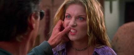 Celebrating their wipeout of a vampire nest, Vatican-sponsored team leader ‘Jack Crow’ (James Woods) and his men party in a motel with an array of hookers (cuz these are a high-class outfit). Ambushed in their debauch by superhuman Master Vampire ‘Velek’ (Thomas Ian Griffith), the partiers are slaughtered, with only ever-surly Jack, gruff assistant ‘Montoya’ (Daniel Baldwin) and Valek-bitten hooker ‘Katrina’ (Sheryl Lee) surviving the attack. With the hapless hooker now telepathically connected to the fiend, Jack and Montoya go into revenge mode. The population of New Mexico takes a sharp decline.