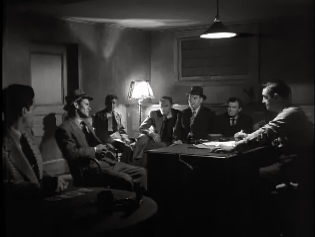 Rackin based his screenplay off the real-world expose of “Murder, Inc.” with Bogart a fictional version of attorney Burton Turkus, Sloane doing the same for Lepke Buchalter, mob leader and eventual guest of Sing Sing’s “Old Sparky”. Sloane’s not much of a threat in the movie: the real menace is provided by Ted de Corsia as ‘Joe Rico’, a fictional facsimile of psycho hit man Abe Reles. It’s one of the imposing de Corsia’s biggest and best bad guy essays. **