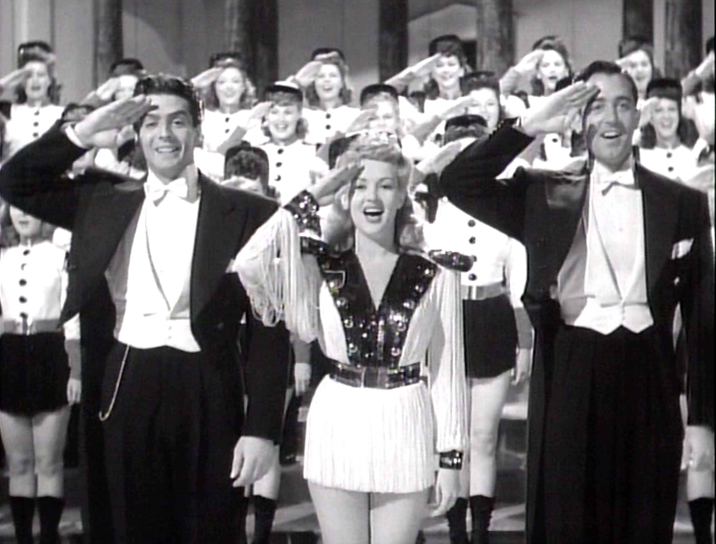 Ads whooped it “The Miracle Musical of 1942!” Well, not quite, but there are a few chuckles, a pretty hep score from musical director Charles Henderson (working on 15 pictures that year) with decent numbers provided by Ralph Rainger and Leo Robin. Highlights are “Except With You”, sung by Cobina Wright, and “Are You Kiddin’?”, sung & danced by Grable. Betty’s fabled legs get plenty of screen time.