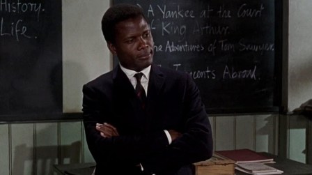 No luck at getting the engineer work he was trained for, ‘Mark Thackeray’ (Sidney Poitier) takes a job teaching at a hard-case school in the East End of London. An outsider from the get-go (he’s Afro-English from British Guiana via California), Mark gets the requisite hard time from his cynical, unruly students (equivalent to a American high school’s senior class) but is determined to tame their excesses enough to actually make them pay attention and maybe even learn something.